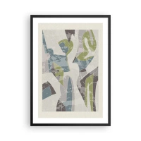 Affiche dans un cadre noir - Poster - Figures abstraites dans les tons de vert et de bleu - 50x70cm - Composition derrière la vitre - Décoration murale moderne pour le salon et la chambre ARTTOR