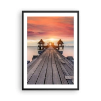 Affiche dans un cadre noir - Poster - Une jetée en bois avec le soleil couchant sur l'eau en arrière-plan - 50x70cm - L'Ouest à l'Est - Décoration murale moderne pour le salon et la chambre ARTTOR