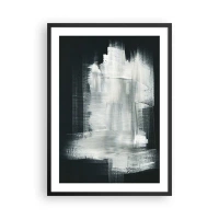 Affiche dans un cadre noir - Poster - Composition abstraite en blanc sur fond sombre - 50x70cm - Tissé à la verticale et à l'horizontale - Décoration murale moderne pour le salon et la chambre ARTTOR