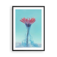 Affiche dans un cadre noir - Poster - Une fleur entourée de ruisseaux colorés sur un fond pastel - 50x70cm - Dans une étreinte vivifiante - Décoration murale moderne pour le salon et la chambre ARTTOR