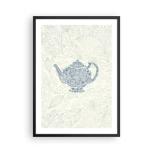Affiche dans un cadre noir - Poster - Illustration décorative d'une théière avec un motif subtil sur un fond clair. - 50x70cm - Le charme du thé - Décoration murale moderne pour le salon et la chambre ARTTOR