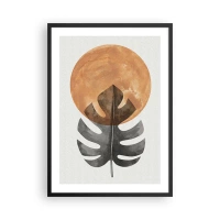 Affiche dans un cadre noir - Poster - Une feuille de monstera sur un cercle orange chaud - 50x70cm - Toujours le soleil - Décoration murale moderne pour le salon et la chambre ARTTOR