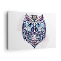Impression sur toile - Image sur toile - Chouette géométrique dans les tons bleu et beige - 70x50cm - Chouette ornementale élaborée - Décoration murale moderne pour le salon et la chambre ARTTOR