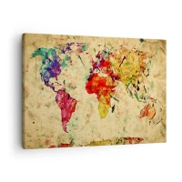 Impression sur toile - Image sur toile - Une interprétation colorée et artistique de la carte du monde - 70x50cm - La vie comme du papier carte coloré - Décoration murale moderne pour le salon et la chambre ARTTOR