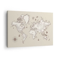 Impression sur toile - Image sur toile - Une carte stylisée du monde dans des tons beige et marron. - 70x50cm - Voyage autour du monde - Décoration murale moderne pour le salon et la chambre ARTTOR