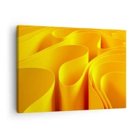Impression sur toile - Image sur toile - Vagues abstraites jaunes ressemblant à des rayons de soleil - 70x50cm - Comme les vagues du soleil - Décoration murale moderne pour le salon et la chambre ARTTOR