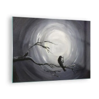 Impression sur verre - Image sur verre - Un corbeau assis sur une branche sur fond de pleine lune - 70x50cm - La clé du mystère de la nuit - Décoration murale moderne pour le salon et la chambre ARTTOR