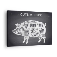 Impression sur toile - Image sur toile - Diagramme des coupes de porc sur fond noir - 70x50cm - L'art de la découpe - Décoration murale moderne pour le salon et la chambre ARTTOR