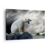 Impression sur toile - Image sur toile - Un ours polaire sur les rochers au-dessus d'une mer agitée - 70x50cm - Roi solitaire de l'Arctique - Décoration murale moderne pour le salon et la chambre ARTTOR