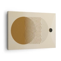 Impression sur toile - Image sur toile - Abstraction géométrique avec des cercles et des lignes ondulées aux couleurs chaudes. - 70x50cm - Sur l'origine des figures géométriques - Décoration murale moderne pour le salon et la chambre ARTTOR