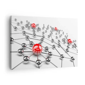 Impression sur toile - Image sur toile - Un réseau de boules métalliques aux accents rouges - 70x50cm - Toile argentée - Décoration murale moderne pour le salon et la chambre ARTTOR