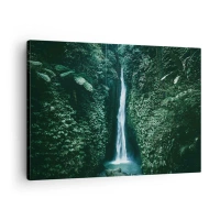 Impression sur toile - Image sur toile - Une cascade entourée d'une végétation tropicale dense - 70x50cm - Fontaine tropicale - Décoration murale moderne pour le salon et la chambre ARTTOR