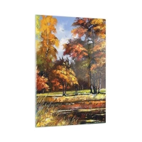 Impression sur verre - Image sur verre - Paysage d'automne avec arbres et reflet dans l'eau - 50x70cm - Paysage en or et bronze - Décoration murale moderne pour le salon et la chambre ARTTOR