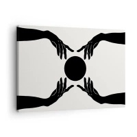 Impression sur toile - Image sur toile - Mains noires dans une composition symétrique avec une boule - 70x50cm - Signe secret - Décoration murale moderne pour le salon et la chambre ARTTOR