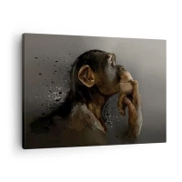 Impression sur toile - Image sur toile - Portrait d'un singe dans une pose réfléchissante sur fond gris - 70x50cm - Certainement un penseur - Décoration murale moderne pour le salon et la chambre ARTTOR