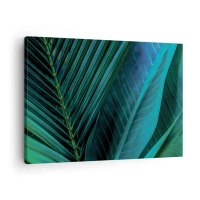 Impression sur toile - Image sur toile - Gros plan de feuilles de palmier dans des tons naturels de vert - 70x50cm - Evantail sous les tropiques - Décoration murale moderne pour le salon et la chambre ARTTOR