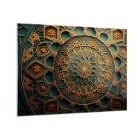 Impression sur verre - Image sur verre - Ornement en or et turquoise dans le style d'une mosaïque arabe - 70x50cm - Dans une ambiance arabe - Décoration murale moderne pour le salon et la chambre ARTTOR