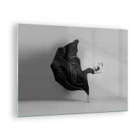 Impression sur verre - Image sur verre - Une danseuse en robe noire flottant dynamiquement dans les airs - 70x50cm - Musique ailées - Décoration murale moderne pour le salon et la chambre ARTTOR
