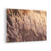 Impression sur verre - Image sur verre - Herbes dorées illuminées par les rayons du soleil couchant - 70x50cm - Prêt à accueillir l'automne - Décoration murale moderne pour le salon et la chambre ARTTOR