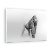 Impression sur verre - Image sur verre - Portrait noir et blanc d'un gorille majestueux sur fond blanc - 70x50cm - Confiant en sa force - Décoration murale moderne pour le salon et la chambre ARTTOR