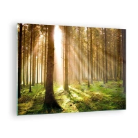 Impression sur verre - Image sur verre - Les rayons du soleil pénètrent à travers les arbres de la forêt - 70x50cm - Les elfes vont bientôt apparaître - Décoration murale moderne pour le salon et la chambre ARTTOR