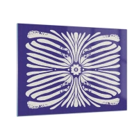 Impression sur verre - Image sur verre - Motif ethnique symétrique sur fond violet - 70x50cm - Inspirations ethniques - Décoration murale moderne pour le salon et la chambre ARTTOR