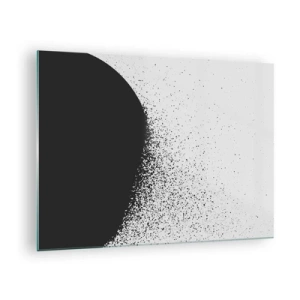 Impression sur verre - Image sur verre - Abstraction d'une masse noire en train de s'effondrer sur un fond blanc - 70x50cm - Mouvement des molécules - Décoration murale moderne pour le salon et la chambre ARTTOR