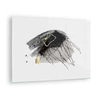 Impression sur verre - Image sur verre - Composition abstraite de noir et d'or sur fond blanc - 70x50cm - En noir et en or - Décoration murale moderne pour le salon et la chambre ARTTOR