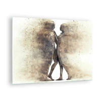 Impression sur verre - Image sur verre - Silhouettes abstraites de deux personnages dans un style poussiéreux - 70x50cm - Ils sont sortis de la poussière pour aimer - Décoration murale moderne pour le salon et la chambre ARTTOR