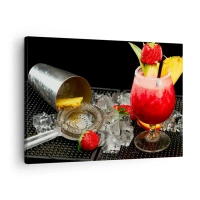 Impression sur toile - Image sur toile - Un cocktail coloré avec des fraises, de la glace et de l'ananas - 70x50cm - Envouter le goût - Décoration murale moderne pour le salon et la chambre ARTTOR
