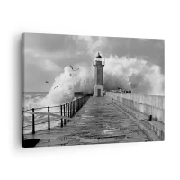Impression sur toile - Image sur toile - Un phare entouré de vagues pendant une tempête - 70x50cm - Sans peur - Décoration murale moderne pour le salon et la chambre ARTTOR