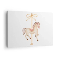 Impression sur toile - Image sur toile - Un cheval de carrousel avec un arc dans des pastels délicats - 70x50cm - Un trot gracieux - Décoration murale moderne pour le salon et la chambre ARTTOR