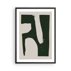 Affiche dans un cadre noir - Poster - Abstraction minimaliste en vert et beige - 50x70cm - Baies blanches - Décoration murale moderne pour le salon et la chambre ARTTOR