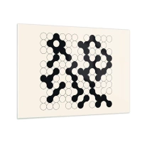 Impression sur verre - Image sur verre - Une mosaïque graphique en noir et blanc composée de points connectés. - 70x50cm - Jeu chinois – variation - Décoration murale moderne pour le salon et la chambre ARTTOR