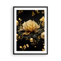 Affiche dans un cadre noir - Poster - Une fleur dorée sur fond noir dans une composition élégante - 50x70cm - Fragilité subtile - Décoration murale moderne pour le salon et la chambre ARTTOR