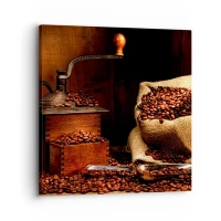 Impression sur toile - Image sur toile - Nature morte avec grains de café et moulin - 30x30 cm