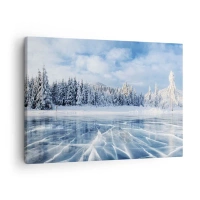 Impression sur toile - Image sur toile - Un lac gelé entouré d'une forêt enneigée - 70x50cm - Vue éblouissante et cristalline - Décoration murale moderne pour le salon et la chambre ARTTOR