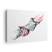 Impression sur toile - Image sur toile - Des mains artistiques se tenant l'une l'autre dans un style minimaliste - 70x50cm - Vous êtes entre de bonnes mains - Décoration murale moderne pour le salon et la chambre ARTTOR