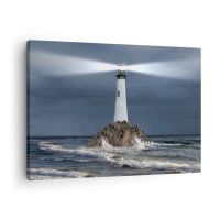 Impression sur toile - Image sur toile - Un phare sur un rocher entouré d'une mer agitée - 70x50cm - I… i… ici ! - Décoration murale moderne pour le salon et la chambre ARTTOR
