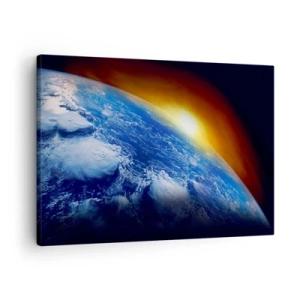 Impression sur toile - Image sur toile - Vue de la Terre depuis l'espace au coucher du soleil - 70x50cm - Lever de soleil sur la planète bleue - Décoration murale moderne pour le salon et la chambre ARTTOR