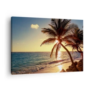 Impression sur toile - Image sur toile - Coucher de soleil tropical sur une plage avec des palmiers - 70x50cm - L'été sous les palmiers - Décoration murale moderne pour le salon et la chambre ARTTOR