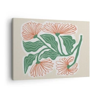 Impression sur toile - Image sur toile - Un dessin de fleurs dans un style minimaliste avec des feuilles vertes - 70x50cm - Folk et moderne - Décoration murale moderne pour le salon et la chambre ARTTOR