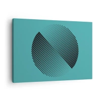 Impression sur toile - Image sur toile - Un cercle minimaliste avec des lignes sur un fond turquoise. - 70x50cm - Cercle – une variation géométrique - Décoration murale moderne pour le salon et la chambre ARTTOR
