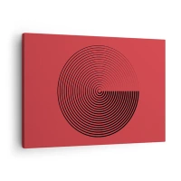 Impression sur toile - Image sur toile - Cercles concentriques sur fond rouge - 70x50cm - Mouvement circulaire - Décoration murale moderne pour le salon et la chambre ARTTOR