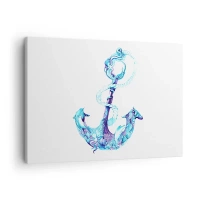 Impression sur toile - Image sur toile - Ancre abstraite dans des tons de bleu avec des détails nautiques - 70x50cm - Le confident des secrets de la mer - Décoration murale moderne pour le salon et la chambre ARTTOR
