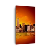Impression sur toile - Image sur toile - Panorama de grande ville en jaune et bronze - 45x80 cm