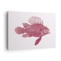 Impression sur toile - Image sur toile - Dessin d'un poisson dans une teinte rouge - 70x50cm - Un habitant des eaux exotiques - Décoration murale moderne pour le salon et la chambre ARTTOR