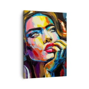 Impression sur toile - Image sur toile - Un portrait coloré d'une femme au regard intense - 50x70cm - Il est impossible de le quitter les yeux - Décoration murale moderne pour le salon et la chambre ARTTOR