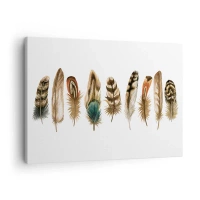 Impression sur toile - Image sur toile - Motif décoratif d'une collection de plumes diverses - 70x50cm - Variation à plumes - Décoration murale moderne pour le salon et la chambre ARTTOR
