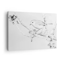 Impression sur toile - Image sur toile - Oiseau sur une branche en noir et blanc avec un style minimaliste - 70x50cm - Matin d'hiver - Décoration murale moderne pour le salon et la chambre ARTTOR
